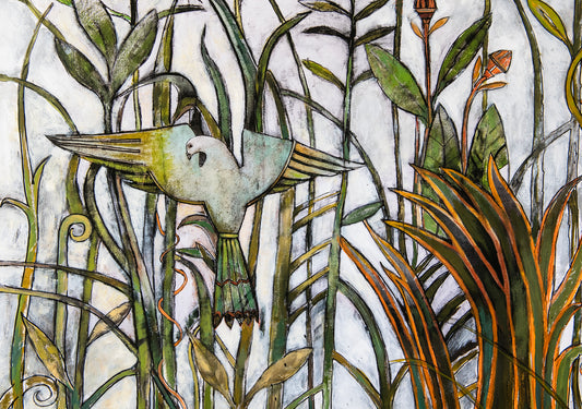 Limited Edition Art Print By Rob Malcolm "Secret Garden with Doves" 90cm x 95cmVendor:Rob MalcomRegular price $450.00 AUDRegular priceUnit price / per