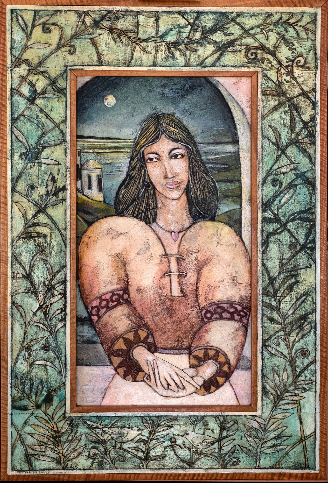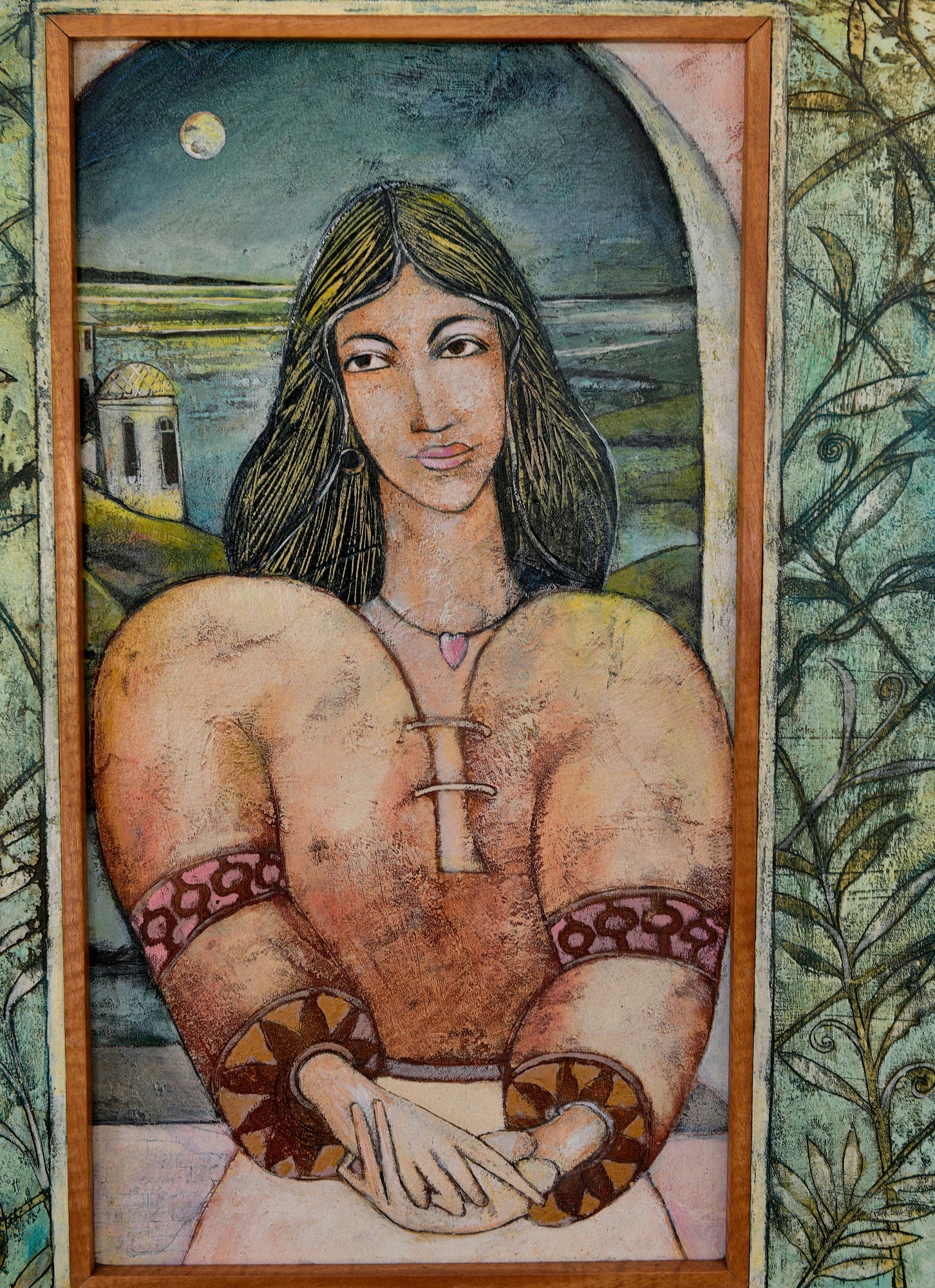Acrylic and oil on canvas with Black Butt frame.